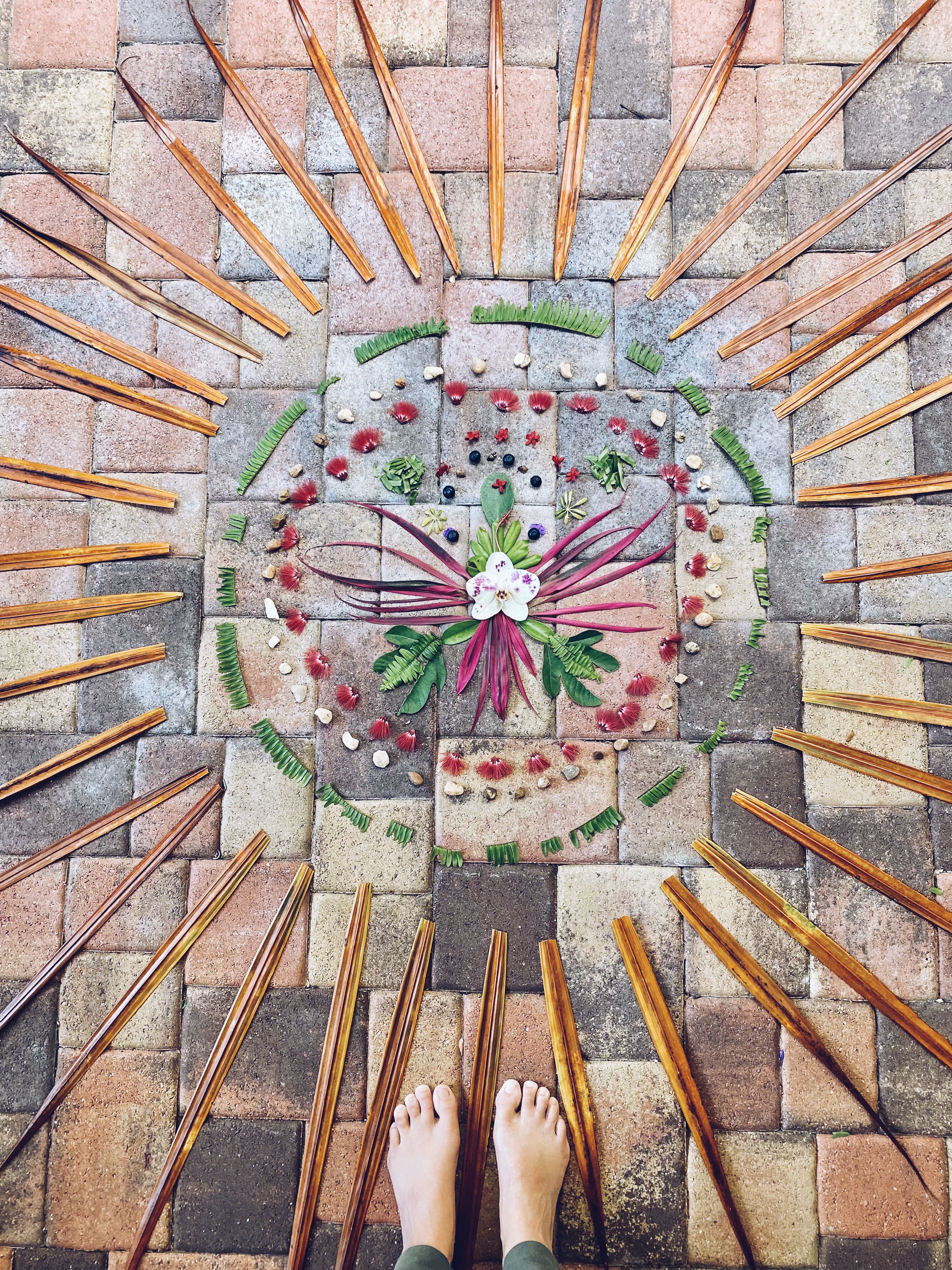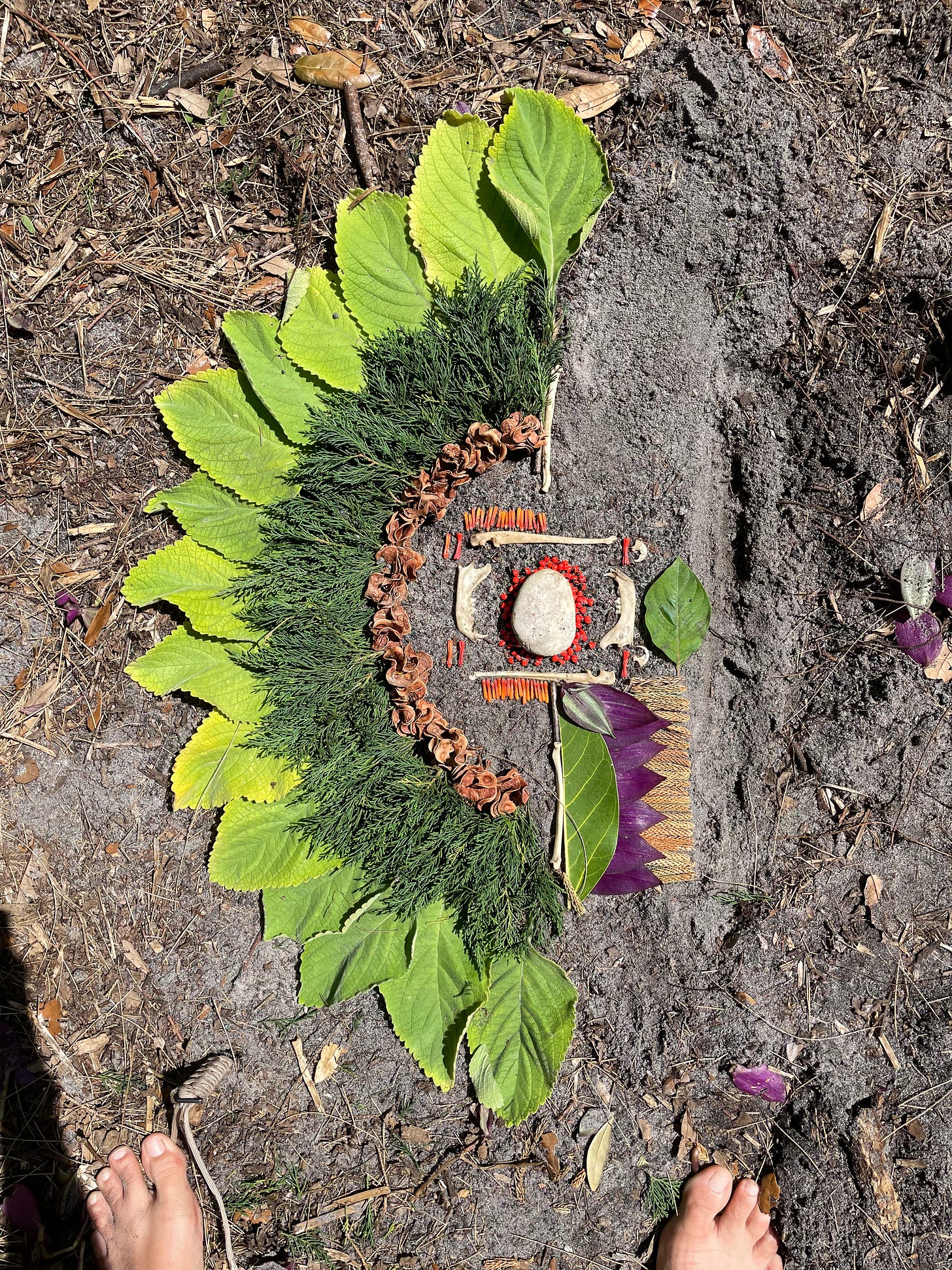 I’ve seen the making of impermanent earth art made with intention and presence lead to true transformation, healing, and meaning-making for individuals, children, parents, grandparents, friends, groups of strangers, grievers, people who know each other well, and entire communities. And the architecture of the sharing of this work stands on the shoulders of giants. Please allow the singing of their praises and the sparkling of my fingers to be some of many bows of gratitude and humility that I offer to the many, many, many hands that have contributed to the Morning Altars work becoming a way through healing, stewarding, and storytelling. It is an honor to learn be held as this WE.