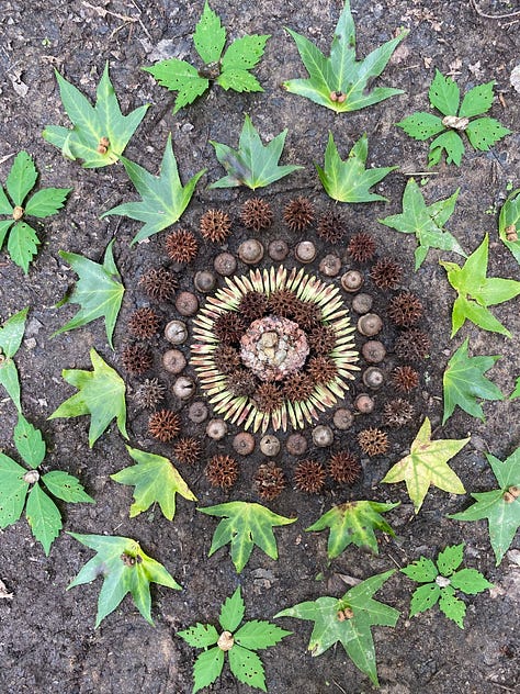 Over the years, this practice has unfolded in my life as a way to deepen my relationship with Life, and to create beauty and/or order out of what feels like confusion, chaos, and lack of clarity. Sometimes it is simply to offer beauty back to Life and to acknowledge paying attention to a place.