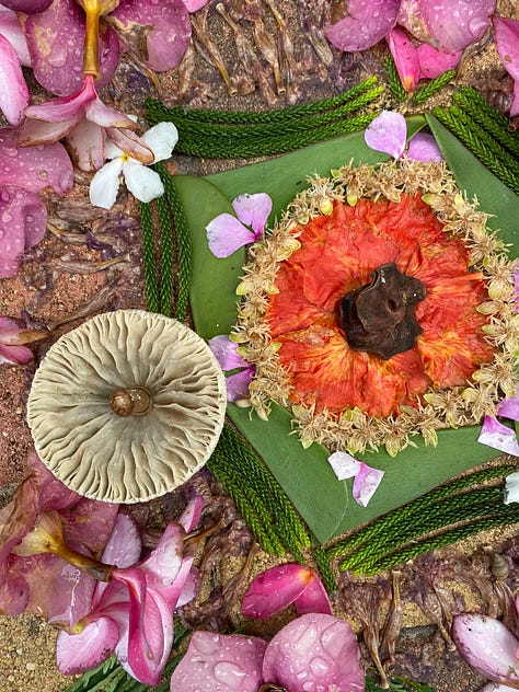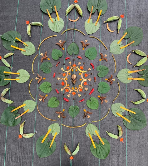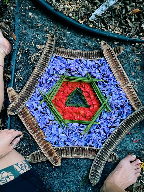This ephemeral art is a way to mark - and make - a transformation. It never ceases to amaze and astound me how much of oneself can be revealed, how much care can be communicated, how much insight can come forward by placing flower petals on the ground.